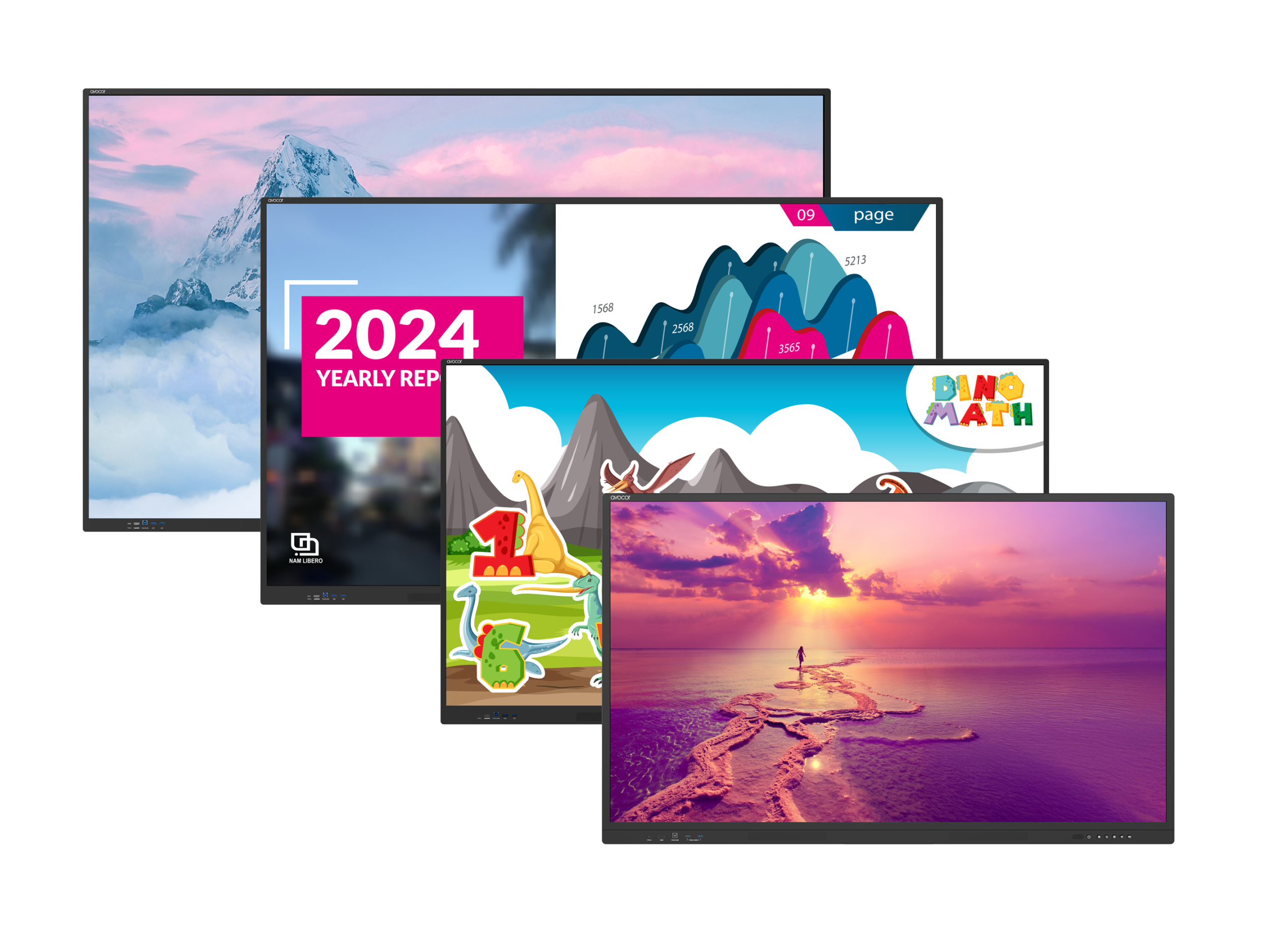 Serija E je mojstrski primer tehnologije, optimizirane za dotik, ki omogoča do 40 hkratnih točk dotika in ponuja vrhunsko izkušnjo dotika ter interakcijo s pisalom. S 4K jasnostjo na steklu, ki ne ustvarja paralakse, zagotavlja natančnost pri vsakem gibu. Lastnosti proti bleščanju in prstnim odtisom zagotavljajo kristalno jasno površino, medtem ko močni zvočniki, usmerjeni naprej, in široka paleta povezljivostnih možnosti, vključno z USB tipa C in HDMI, oživijo multimedijske vsebine. Vgrajeno je praktično vse: Avocorjev uporabniški vmesnik UiQ, sistem za upravljanje FUSE, platforma Rise Vision za digitalno oglaševanje ter DisplayNote Montage za brezžično deljenje zaslonov. In da, tudi varen in učinkovit Android.