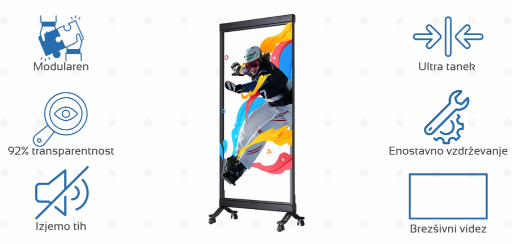 LED notranji transparentni LED zaslon je vrhunska rešitev za podjetja, ki želijo svoje izložbe spremeniti v privlačne in učinkovite komunikacijske površine brez kompromisov glede svetlobe ali prosojnosti. Inovativna tehnologija omogoča prikaz izjemno ostre slike, obenem pa ohranja do 92 % prosojnosti za nemoten pogled v notranjost. Visoka svetilnost, modularna zasnova ter elegantno in tiho delovanje zagotavljajo popolno prilagodljivost tako za manjše kot večje izložbene prostore.