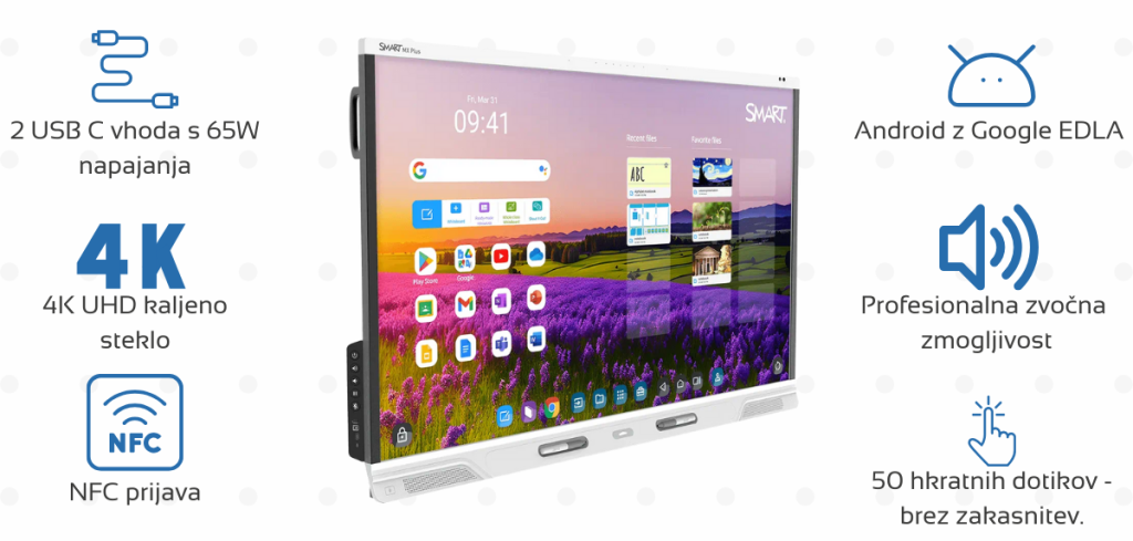 Interaktivni zasloni serije SMART Board MX Plus imajo vsa potrebna orodja, ki jih potrebujete za učinkovito delo. Vključena iQ tehnologija omogoča, da z enostavnim dotikom preklopite med prikazovanja videa, pisanjem po digitalni tabli in brskanjem po internetu.