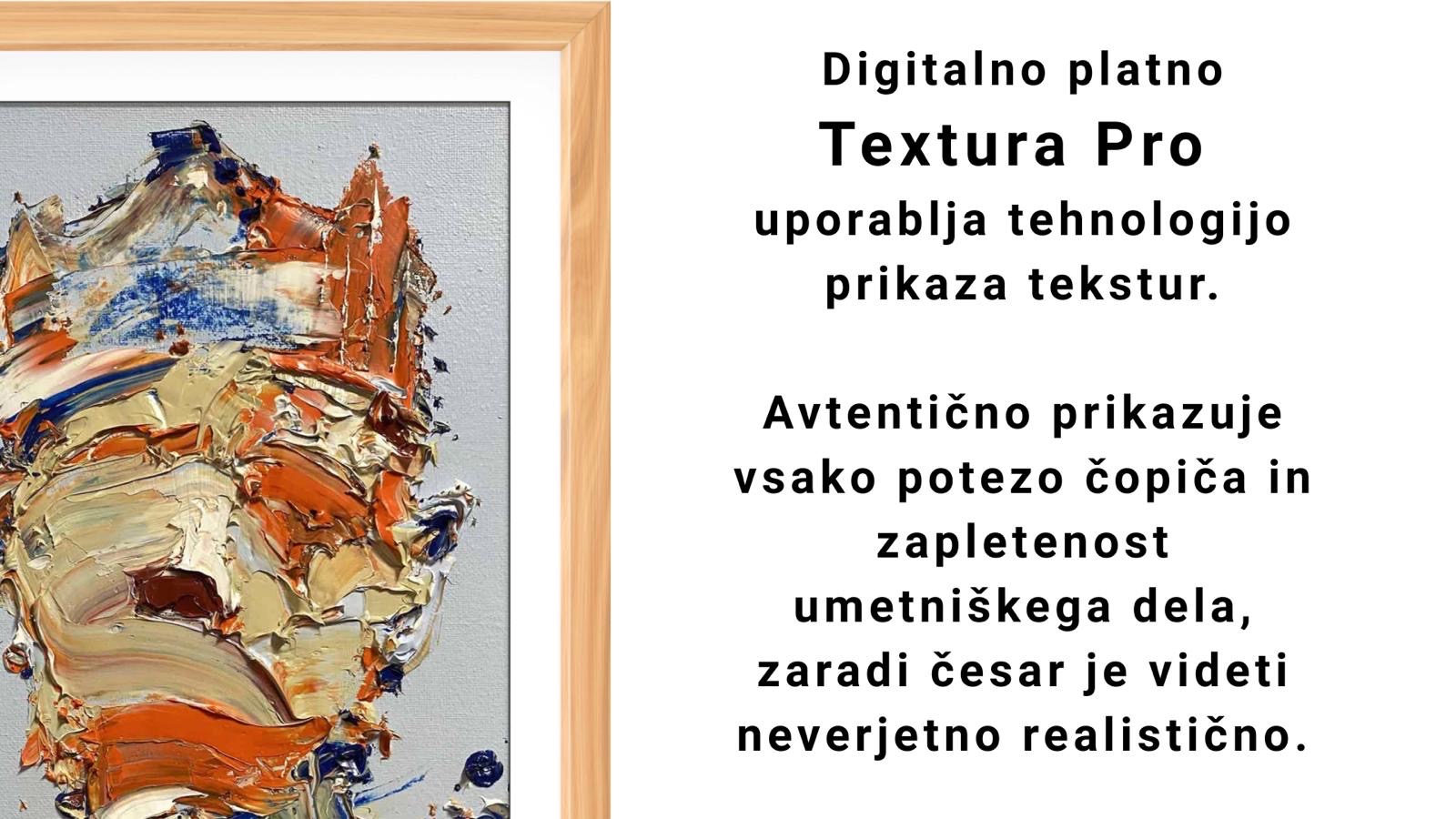 Textura Pro je 27” specializiran digitalni okvir, ki združuje napredno tehnologijo in estetiko, da digitalno umetnost predstavi na način, ki oživlja prostor. Zaslon ustvarja prijetno in prefinjeno vzdušje, hkrati pa omogoča enostavno upravljanje in dostop do obsežne kurirane knjižnice umetnin.